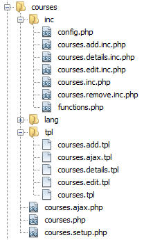 ![]() The courses.php file only contains a switch() statement which decides what file to include from the 'inc' folder. The files in 'inc' contain code similar to what you posted above. There's no use in looking to download this plugin, it's something I built for a client, so it's private. |